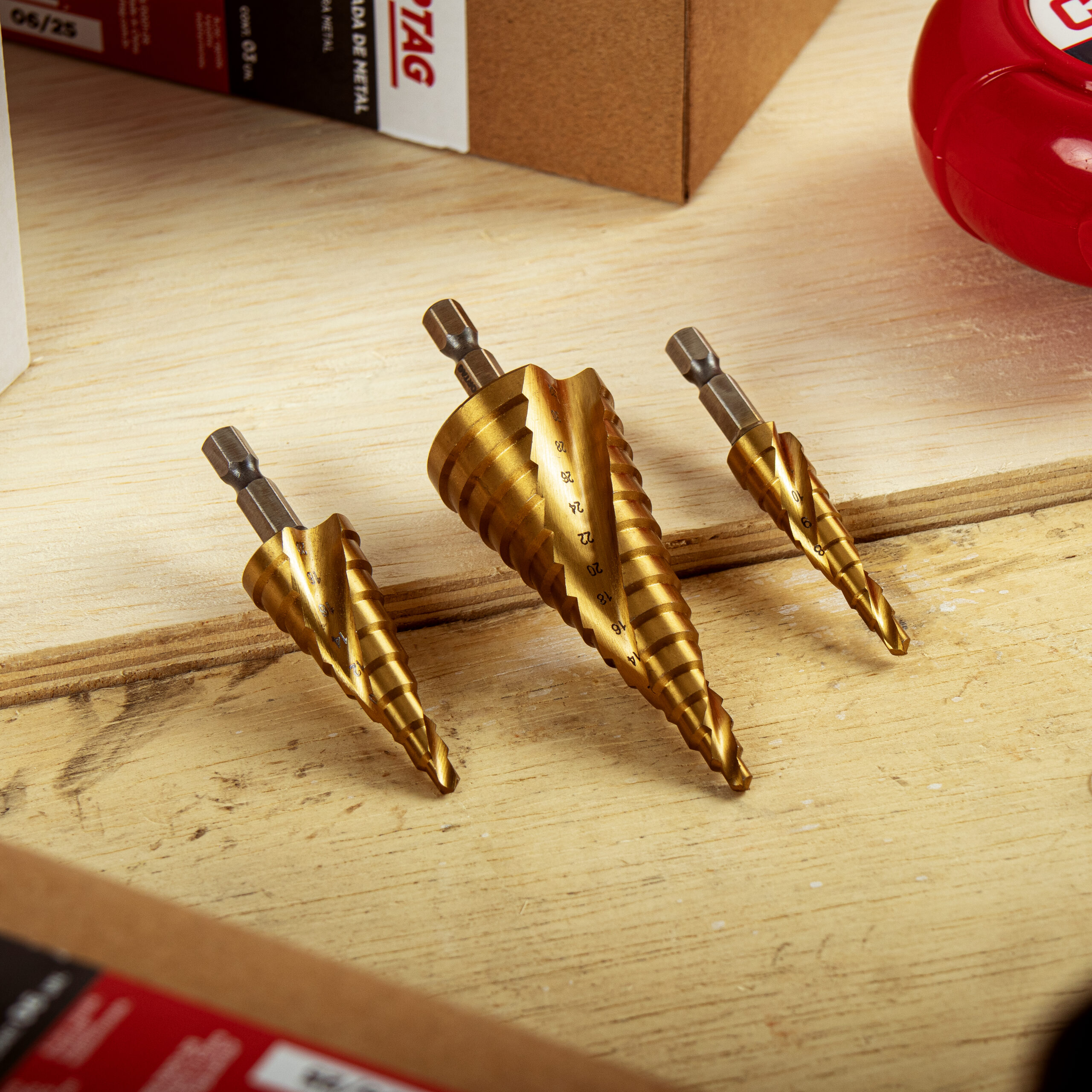 As Brocas Escalonadas Revestidas de Titânio são a escolha ideal para quem busca agilidade, precisão e durabilidade na perfuração de furos com diferentes diâmetros.