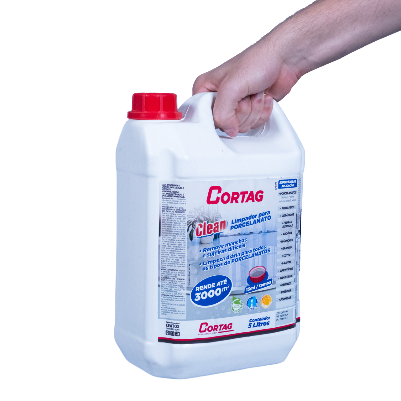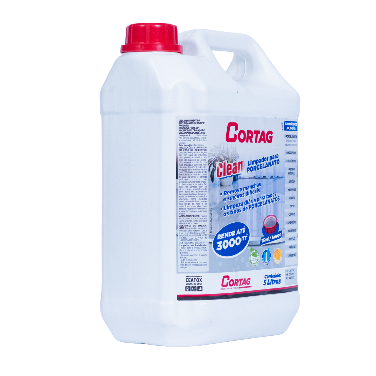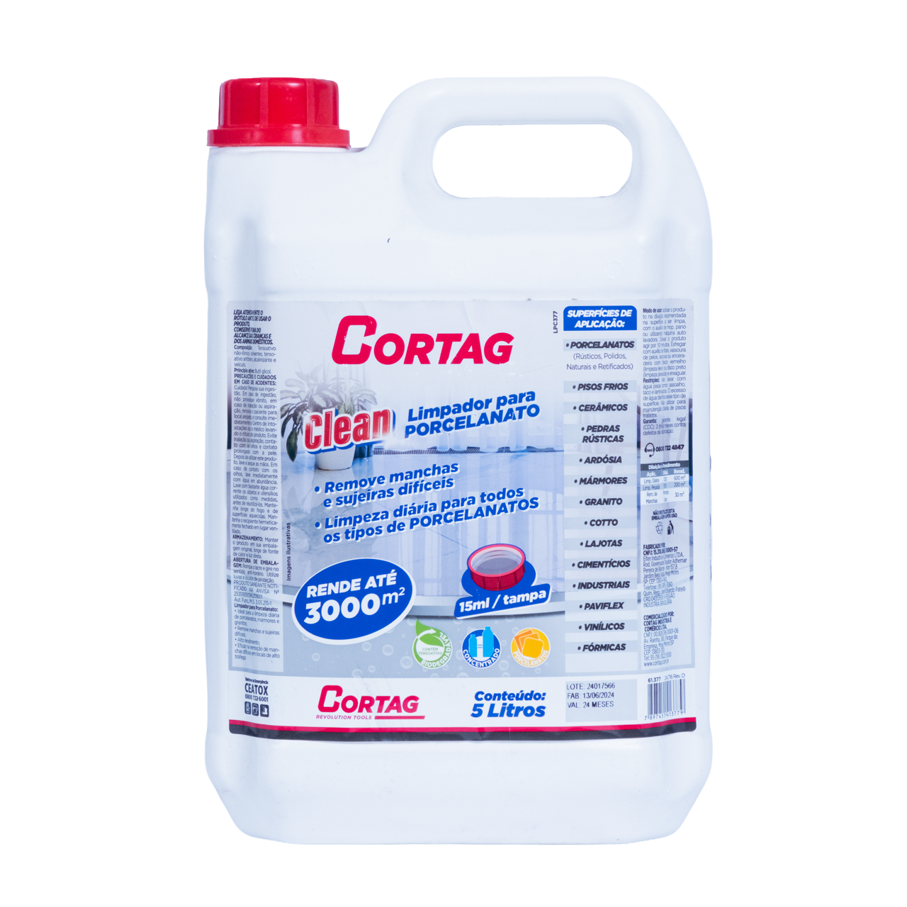 O Limpador Universal Cortag Clean foi desenvolvido para remoção intensiva de manchas e sujeiras difíceis em porcelanatos, pisos encardidos e superfícies porosas.
