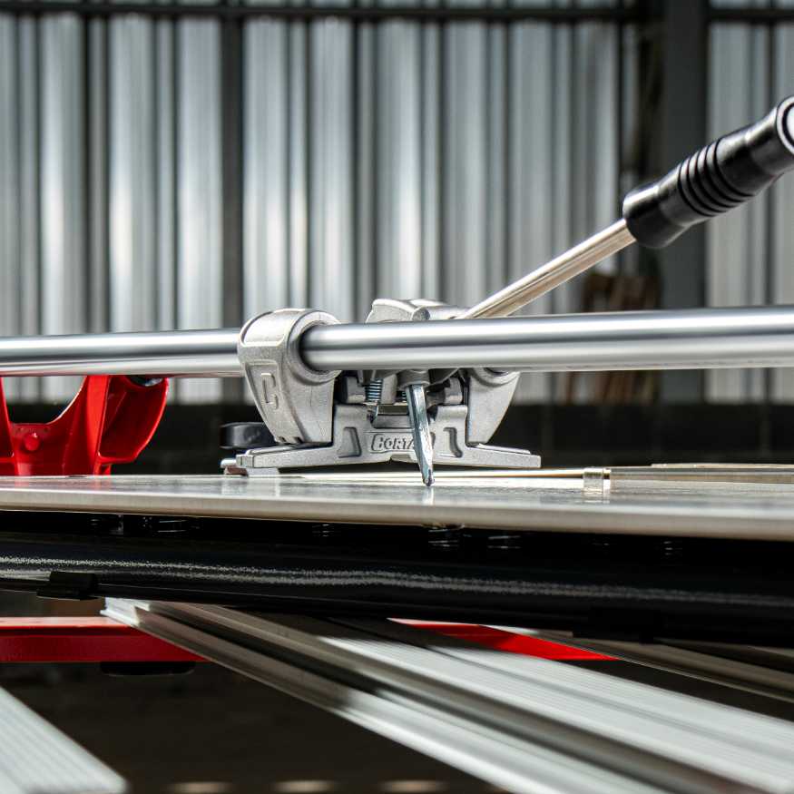 - Maior produtividade : Corte e separação na própria base, com multiplicação de força de 13 vezes . Retorno à posição de riscagem com apenas um toque.